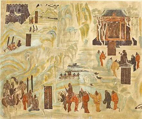 张骞出使西域壁画摹本,摹自莫高窟第323窟(盛唐)